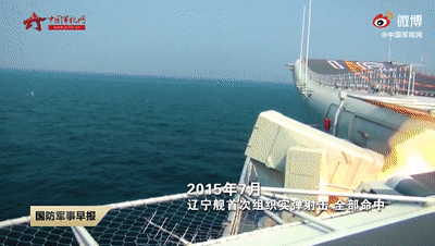 2015年7月,遼寧艦首次組織實(shí)彈射擊,取得全部命中的好成績(jī)。