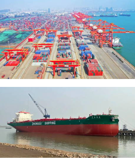 在公開照片中,與習(xí)近平總書記“同框”的,正是中國(guó)船舶集團(tuán)旗下武漢船機(jī)、七一六所參與建設(shè)的日照港順岸開放式全自動(dòng)化集裝箱碼頭,以及上船院設(shè)計(jì)、汾西重工提供關(guān)鍵配套的4600箱集裝箱船“中谷南昌”號(hào)。