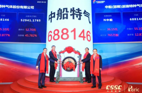 4月21日,中國船舶集團(tuán)有限公司旗下中船(邯鄲)派瑞特種氣體股份有限公司(簡稱:中船特氣,證券代碼:688146)首次公開發(fā)行A股上市儀式在上海證券交易所舉行。這是中國船舶集團(tuán)旗下第12家上市公司,也是集團(tuán)公司重組后首家在科創(chuàng)板公開發(fā)行A股的上市公司。中國船舶集團(tuán)黨組書記、董事長溫剛出席儀式,黨組成員、總會計(jì)師賈海英出席儀式并致辭,黨組成員、副總經(jīng)理盛紀(jì)綱出席儀式。