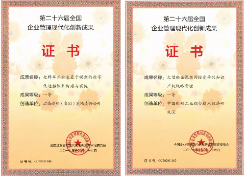 所屬江南造船(集團(tuán))有限責(zé)任公司申報的《老牌軍工企業(yè)基于模型定義的數(shù)字造船新模式構(gòu)建與實施》和中國船舶工業(yè)綜合技術(shù)經(jīng)濟(jì)研究院申報的《大型船企聚焦國際競爭的知識產(chǎn)權(quán)戰(zhàn)略管理》分獲國家級一等獎。本屆僅有30項一等獎,另有4項成果榮獲國家級二等獎,獲獎成果數(shù)量創(chuàng)船舶行業(yè)歷年最好成績。