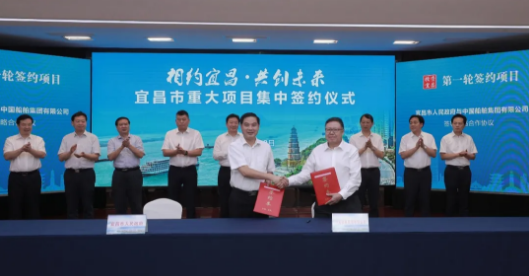 7月28日,中國船舶集團(tuán)有限公司黨組成員、副總經(jīng)理錢建平代表中國船舶集團(tuán)與宜昌市政府簽訂了《中國船舶(宜昌)海洋裝備科技園項目框架合作協(xié)議》。宜昌市委書記周霽、市長張家勝參加簽約活動。