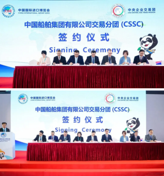 簽約儀式上,中國船舶集團(tuán)所屬廣船國際股份有限公司、中船黃埔文沖船舶有限公司、滬東重機(jī)有限公司、陜西柴油機(jī)重工有限公司、中國船舶物資公司、中國船舶貿(mào)易有限公司、上海外高橋造船有限公司等7家企業(yè)與西門子、ABB、康士伯、瓦錫蘭、日本大發(fā)、韓國現(xiàn)代等19家合作商,共進(jìn)行了23個項目簽約,簽約總金額共計1.14億美元,涉及軸帶發(fā)電機(jī)、主發(fā)電機(jī)、主柴油機(jī)、閥門遙控系統(tǒng)、柴油機(jī)零部件、曲軸等產(chǎn)品。另外,中國船舶集團(tuán)參加本屆進(jìn)博會專業(yè)觀眾觀展活動的人數(shù)也較往年有明顯提升。