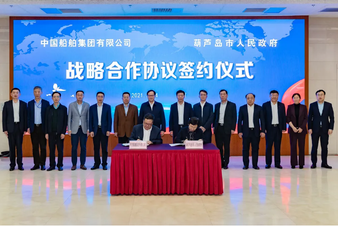 3月24日,中國(guó)船舶集團(tuán)有限公司與葫蘆島市人民政府在京簽署戰(zhàn)略合作協(xié)議。中國(guó)船舶集團(tuán)黨組副書(shū)記、總經(jīng)理?xiàng)罱鸪?,葫蘆島市委副書(shū)記、市長(zhǎng)楊軍生,市委常委、副市長(zhǎng)張明謙出席簽約儀式。中國(guó)船舶集團(tuán)黨組成員、副總經(jīng)理錢(qián)建平,葫蘆島市副市長(zhǎng)黃曉霞分別代表雙方在協(xié)議上簽字。簽約前,雙方圍繞共同服務(wù)國(guó)家戰(zhàn)略,就進(jìn)一步加強(qiáng)交流合作、實(shí)現(xiàn)共同發(fā)展進(jìn)行了深入交流。