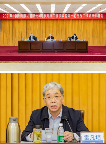 3月31日,中國(guó)船舶集團(tuán)有限公司召開2021年巡視巡察工作會(huì)議暨第一輪巡視工作動(dòng)員部署會(huì)。中國(guó)船舶集團(tuán)黨組書記、董事長(zhǎng)、巡視工作領(lǐng)導(dǎo)小組組長(zhǎng)雷凡培,紀(jì)檢監(jiān)察組組長(zhǎng)、黨組成員、巡視工作領(lǐng)導(dǎo)小組副組長(zhǎng)李佳穎出席會(huì)議并講話。