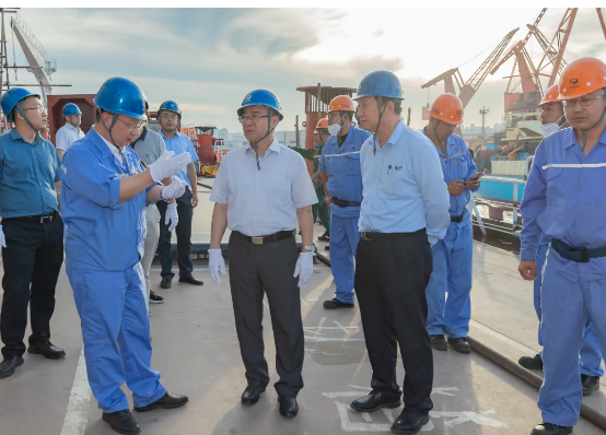 7月21日,工信部黨組成員、總工程師田玉龍到中國船舶集團有限公司大連地區(qū)成員單位調(diào)研指導工作。田玉龍一行先后到中國船舶集團第七六〇研究所、大連船舶重工集團有限公司實地考察了有關(guān)試驗場和在建船舶,聽取了兩家單位整體發(fā)展情況特別是科技創(chuàng)新方面的工作匯報,并對下一步工作提出要求。
