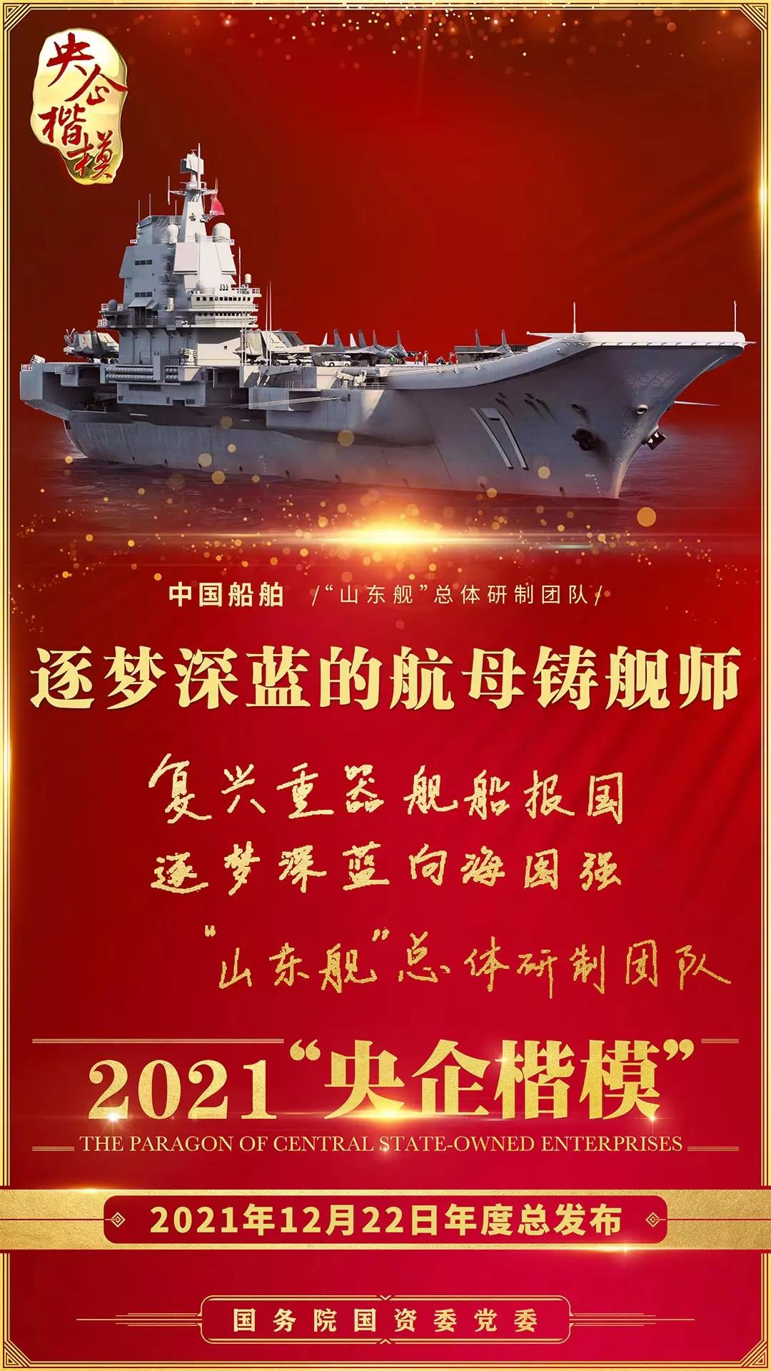 12月22日,國務(wù)院國資委黨委舉行2021年第二批“央企楷?!卑l(fā)布暨年度總發(fā)布儀式,中國船舶“山東艦”總體研制團(tuán)隊(duì)榮獲2021年“央企楷模”榮譽(yù)稱號。繼“奮斗者”號萬米載人潛水器研發(fā)團(tuán)隊(duì)獲評2020年“央企楷模”榮譽(yù)稱號后,中國船舶集團(tuán)再獲此殊榮。