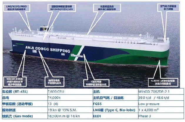 該船的關鍵性設備系統(WinGD X-DF主機及iCER系統、LNG圍護和供氣系統、滾裝設備系統)均采用中國船舶集團旗下公司或科研院所產品,顯著提升了該新造船項目的核心設備國產自主化率,在我國大型滾裝船型建造史上具有里程碑意義,建成交付后將成為中國最大、世界領先、國產化程度最高的遠洋汽車運輸船,能夠積極滿足上汽集團以及國內其它自主、外資品牌不斷增長的出口業(yè)務需求,也將加快推動高含金量“中國智造”走向全球。