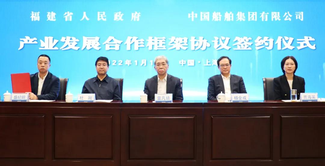1月18日,中國(guó)船舶集團(tuán)有限公司與福建省人民政府通過“云簽約”方式簽署戰(zhàn)略合作協(xié)議。中國(guó)船舶集團(tuán)黨組書記、董事長(zhǎng)雷凡培,黨組副書記、總經(jīng)理?xiàng)罱鸪?,黨組副書記、董事杜剛,黨組成員、總會(huì)計(jì)師賈海英,黨組成員、副總經(jīng)理盛紀(jì)綱;福建省委書記尹力,省委副書記、代省長(zhǎng)趙龍,省委常委、常務(wù)副省長(zhǎng)郭寧寧,省委常委、秘書長(zhǎng)吳偕林,副省長(zhǎng)康濤出席簽約儀式。盛紀(jì)綱、郭寧寧分別代表雙方在協(xié)議上簽字。