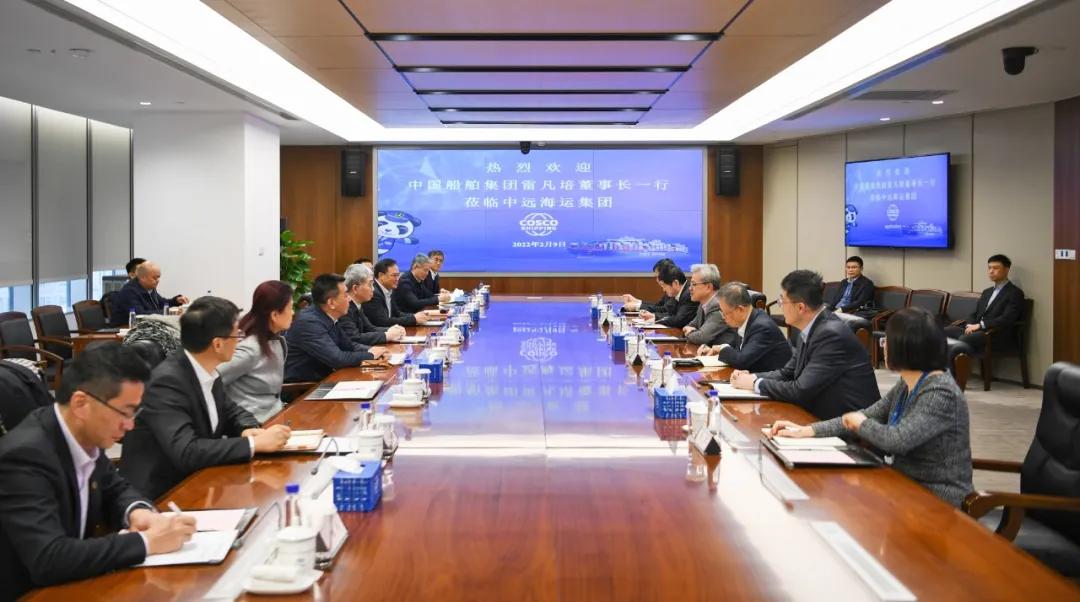 2月9日,中國船舶集團(tuán)有限公司黨組書記、董事長雷凡培,黨組副書記、總經(jīng)理?xiàng)罱鸪梢恍懈爸羞h(yuǎn)海運(yùn)大廈拜會(huì)中國遠(yuǎn)洋海運(yùn)集團(tuán)有限公司黨組書記、董事長萬敏,黨組副書記、總經(jīng)理付剛峰。雙方互賀壬寅虎年新春,圍繞深入貫徹落實(shí)國家重大戰(zhàn)略,就進(jìn)一步加強(qiáng)綠色燃料技術(shù)研發(fā)應(yīng)用、船舶與航運(yùn)業(yè)全產(chǎn)業(yè)鏈構(gòu)建等領(lǐng)域的交流合作,攜手推動(dòng)我國航運(yùn)業(yè)和造船業(yè)高質(zhì)量發(fā)展進(jìn)行了深入探討并達(dá)成廣泛共識(shí)。中國船舶集團(tuán)黨組成員、副總經(jīng)理孫偉、盛紀(jì)綱,中遠(yuǎn)海運(yùn)集團(tuán)黨組成員、副總經(jīng)理、總會(huì)計(jì)師孫云飛參加會(huì)談。
