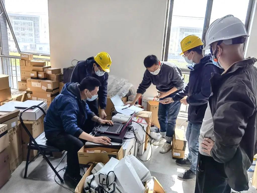 工程弱電安防系統(tǒng)是一塊“硬骨頭”。七一六所自3月22日起就連夜組織進(jìn)行工程的弱電安防設(shè)計(jì),23日開工建設(shè),26日完成一號(hào)工程整體交付,30日完成三號(hào)工程弱電安防主體施工任務(wù),連續(xù)幾個(gè)通宵;搶進(jìn)度、抓質(zhì)量、保安全,反反復(fù)復(fù)地設(shè)計(jì)改圖、不停地轉(zhuǎn)換工作界面、現(xiàn)場(chǎng)驗(yàn)收過程出現(xiàn)的醫(yī)護(hù)新需求、施工現(xiàn)場(chǎng)造成的返工維修……現(xiàn)場(chǎng)團(tuán)隊(duì)分成多個(gè)工作組,細(xì)化職責(zé)分工、積極統(tǒng)籌調(diào)度,他們咬牙堅(jiān)持每天只睡一兩個(gè)小時(shí),最終高質(zhì)量完成了任務(wù)。