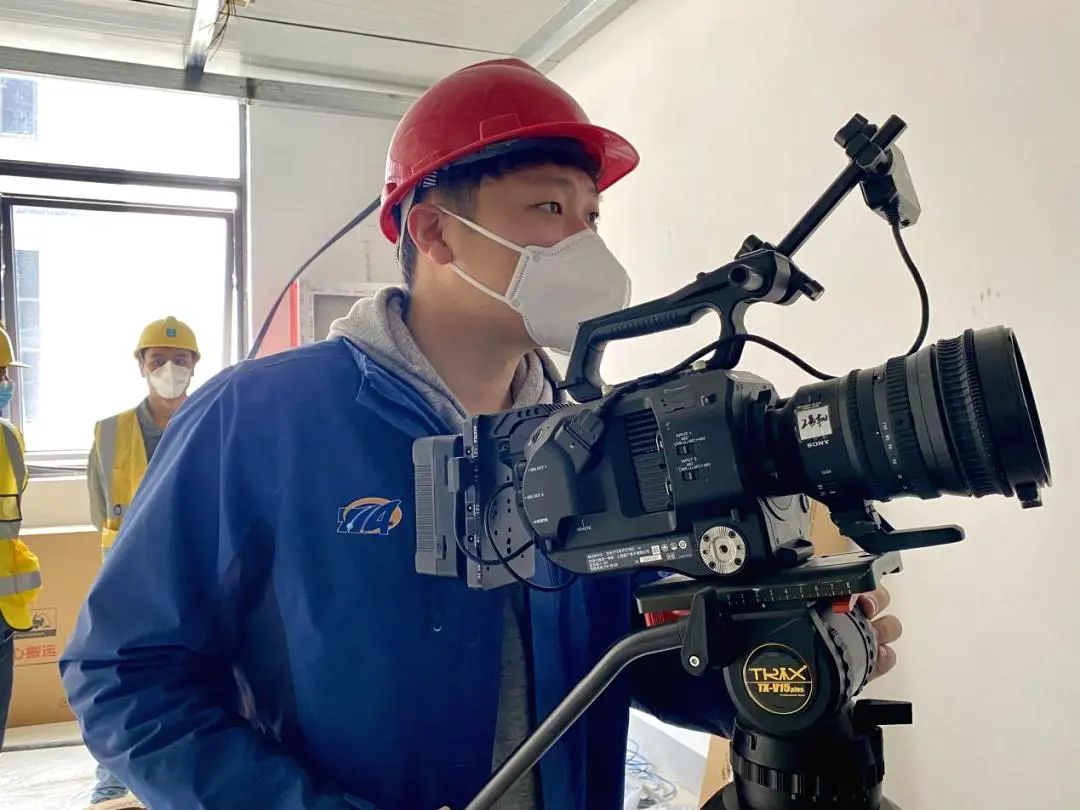 聲像保障第一時(shí)間到位。七一四所青年突擊隊(duì)員潘偉、張浩偉抵達(dá)當(dāng)晚便投入到拍攝工作中。面對(duì)上百個(gè)工作面、數(shù)千位建筑工人,潘偉、張浩偉發(fā)揚(yáng)敢打敢拼的戰(zhàn)斗精神,在現(xiàn)場(chǎng)架設(shè)了8個(gè)機(jī)位、2架無人機(jī)同時(shí)進(jìn)行拍攝。有時(shí)為了找到一個(gè)合適拍攝角度,兩人克服恐懼在高達(dá)八米的屋頂架設(shè)拍攝機(jī)位,為工程建設(shè)拍攝下了近百份寶貴的聲像資料。