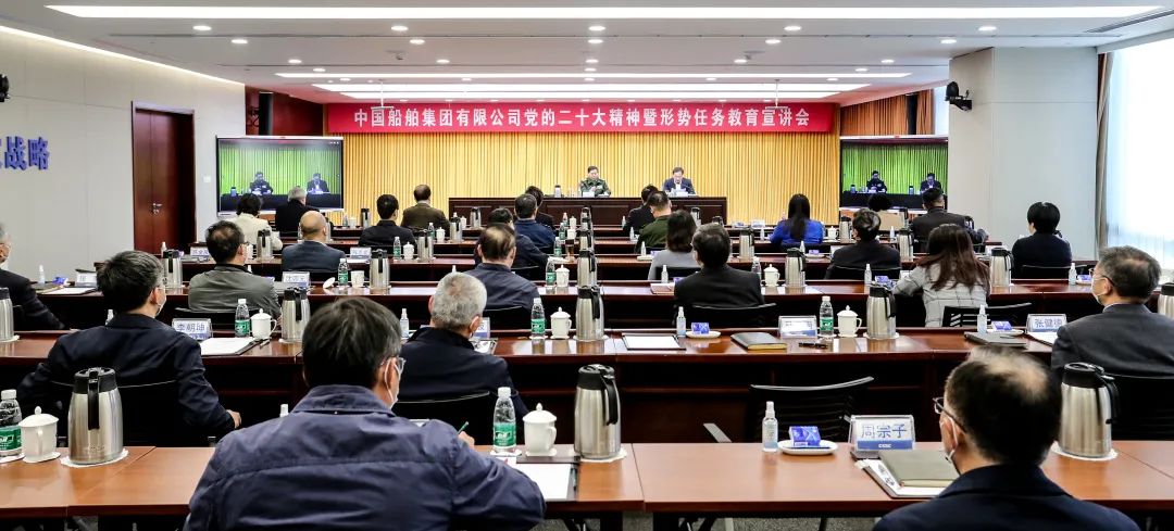 1月30日,中國船舶集團有限公司召開黨的二十大精神暨形勢任務教育宣講會,動員集團上下全面準確領會黨的二十大精神,深刻認識當前世界百年未有之大變局,更好把握當前國際國內(nèi)形勢,進一步團結帶領廣大干部職工踔厲奮發(fā)、勇毅前行,加快推進世界一流船舶集團建設。中國船舶集團黨組副書記、總經(jīng)理楊金成主持會議,黨組副書記、董事杜剛,黨組成員、副總經(jīng)理孫偉,紀檢監(jiān)察組組長、黨組成員李佳穎,黨組成員、總會計師賈海英,黨組成員、副總經(jīng)理盛紀綱出席會議。會議邀請十三屆全國政協(xié)常委、提案委員會副主任,中央軍委聯(lián)合參謀部原上將副總參謀長戚建國作宣講報告。