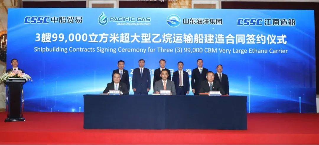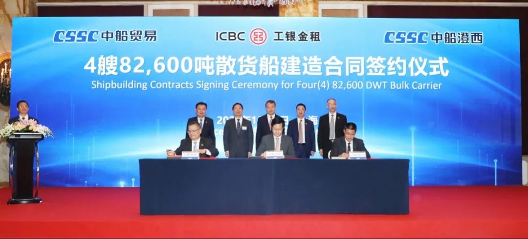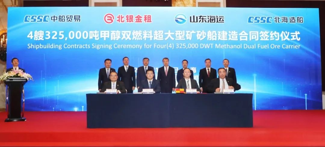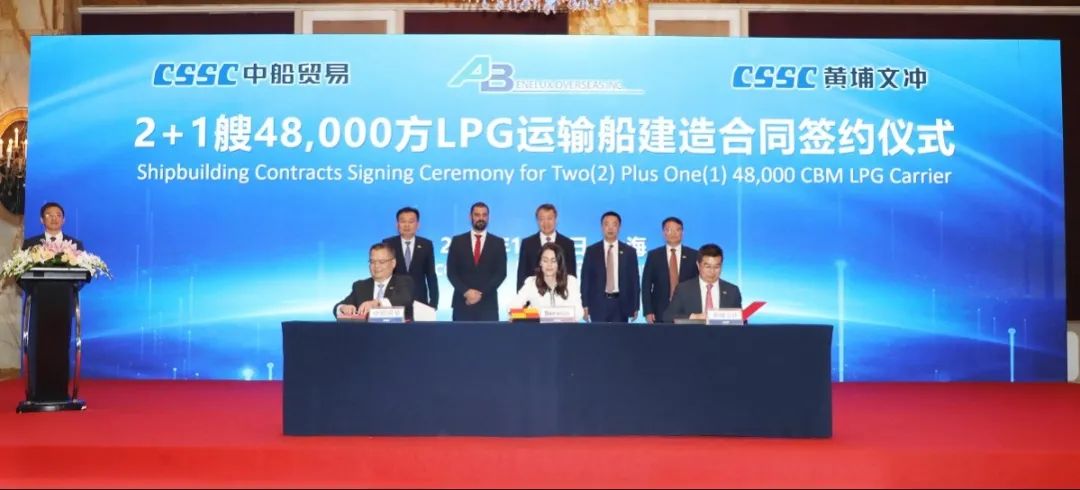 簽約儀式上,外高橋造船、中船貿(mào)易與Seaspan、現(xiàn)代Glovis簽署了6+4艘10800車LNG雙燃料PCTC船項目;廣船國際、中船貿(mào)易與HMM、現(xiàn)代Glovis簽署了6+4艘10800車LNG雙燃料PCTC船項目;北海造船、中船貿(mào)易與北銀金租、山東海運簽署了4艘325000噸超?型甲醇雙燃料礦砂船項目;江南造船、中船貿(mào)易與太平洋氣體簽署了3艘99000方VLEC船項目;黃埔文沖、中船貿(mào)易與Benelux公司簽署了2+1艘48000方LPG船項目;中船澄西、中船貿(mào)易與工銀金租簽署了4艘82600噸散貨船項目;大連造船與七二五所青島雙瑞簽署了15000TEU集裝箱船甲醇供應(yīng)系統(tǒng)項目。