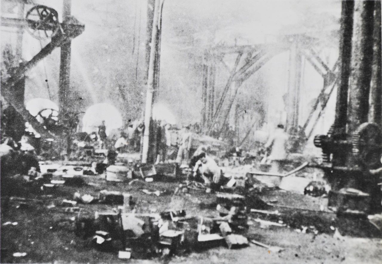 1949年5月上海,雖然江南造船所經(jīng)歷了英勇的護(hù)廠斗爭,但此時(shí)的船塢、廠房、設(shè)備,均已遭受到嚴(yán)重的破壞。