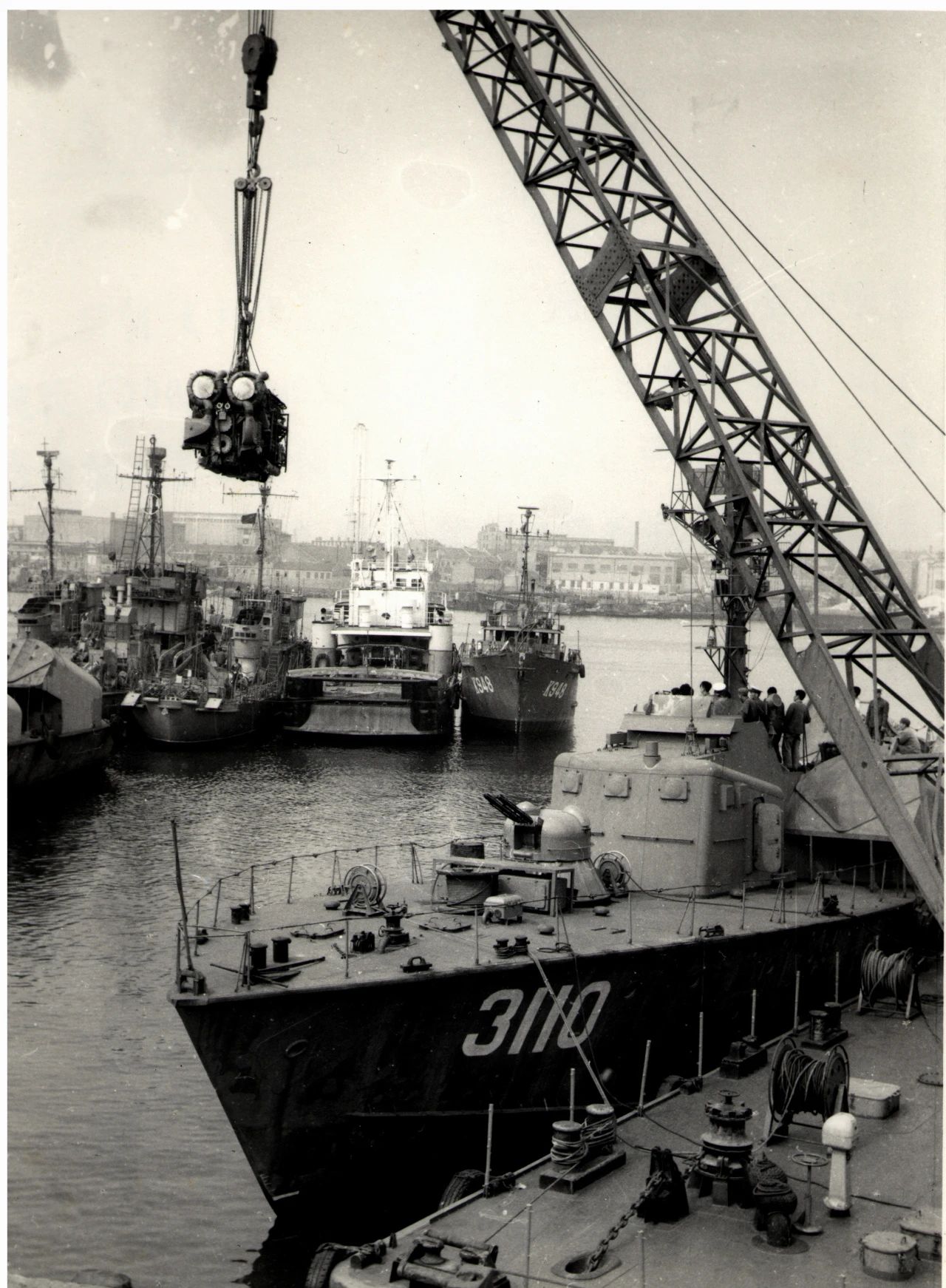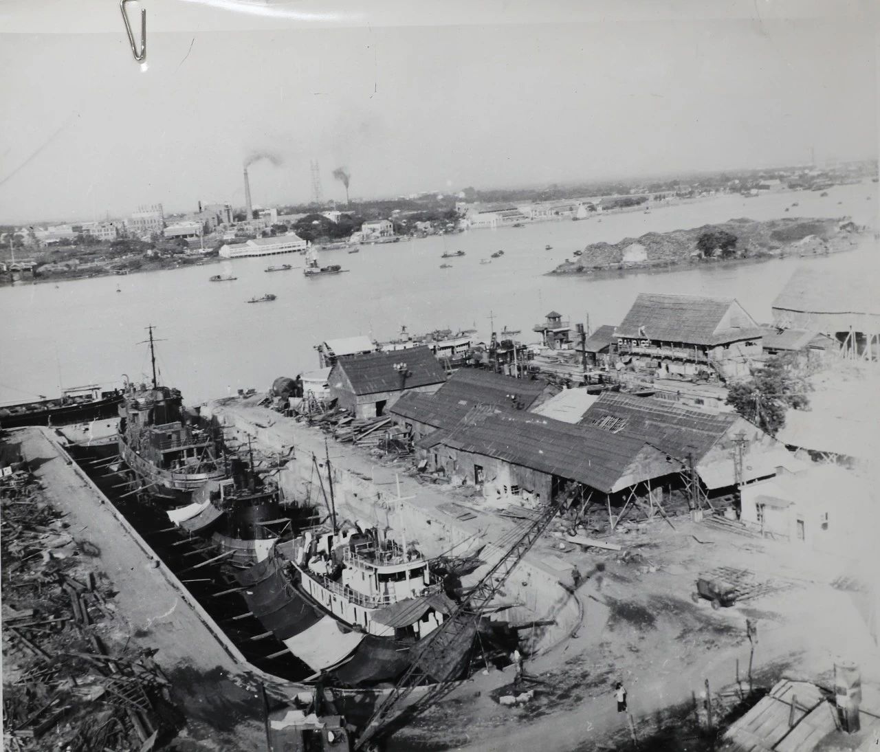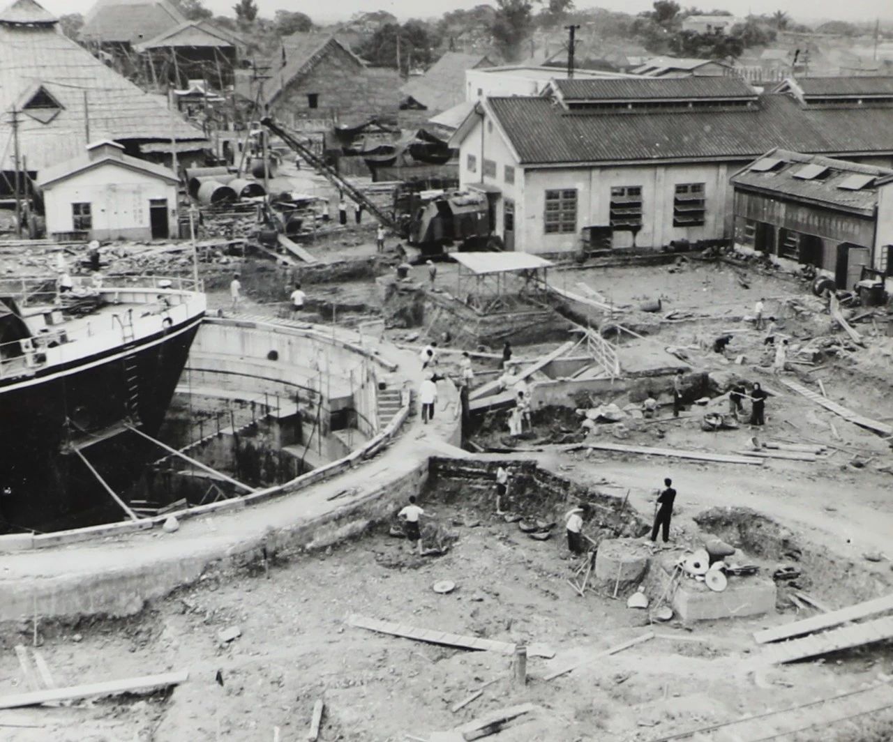 1958年廣州,1958年,廣船國際的前身廣州造船廠的造船塢,圖中的履帶式起重機(jī)是廣州造船廠主要的起重設(shè)備。