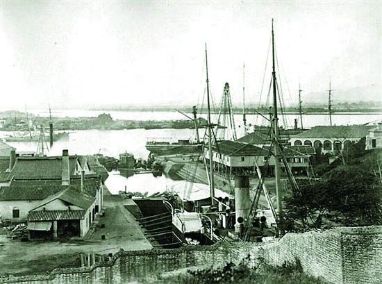 19世紀(jì)廣州19世紀(jì)的柯拜船塢和錄順船塢。
