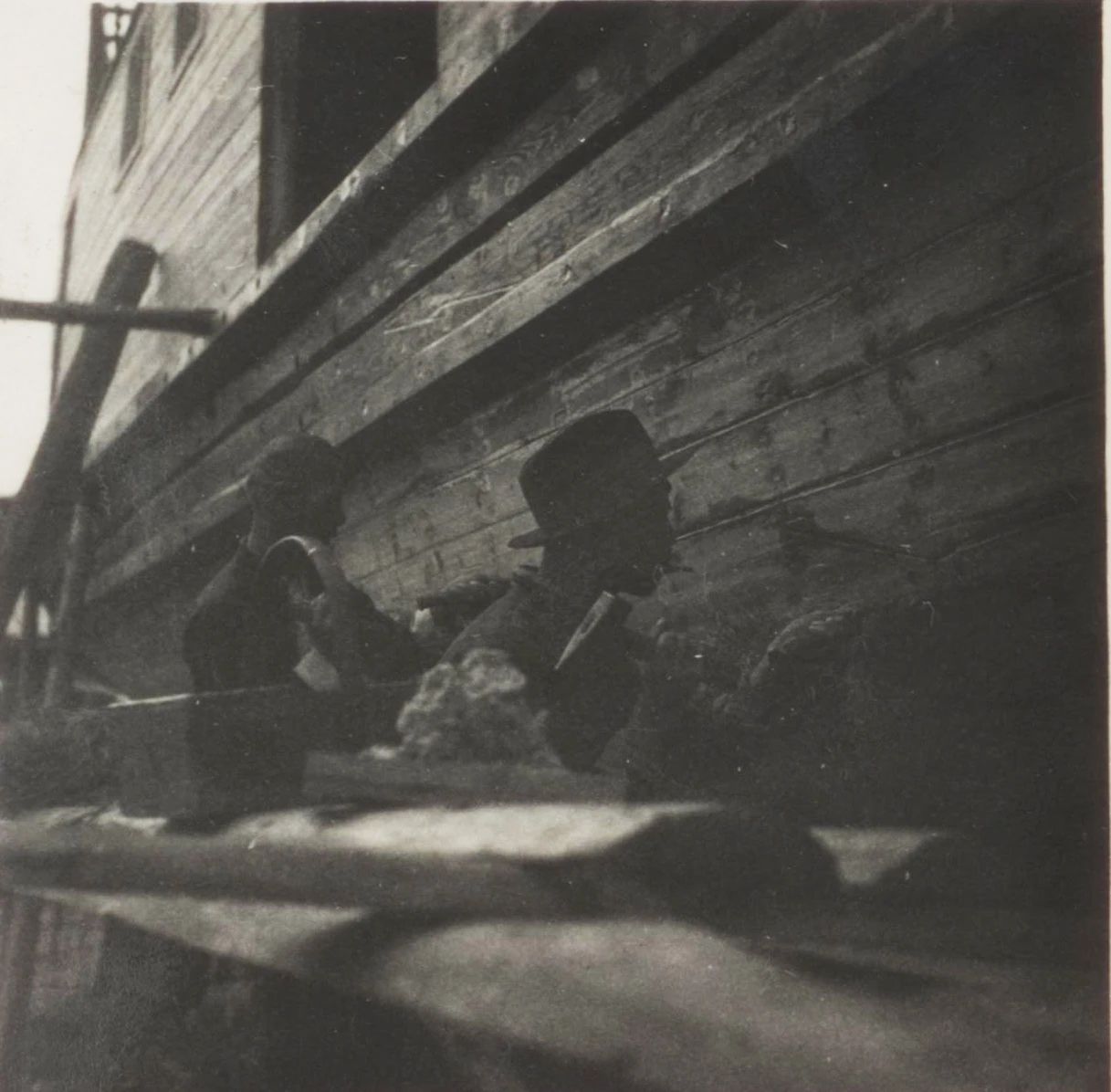 1934年武漢,上世紀(jì)30年代,武昌造船成立之初,工人們以手工作業(yè)“敲敲打打”形式開展修造船業(yè)務(wù)。修造的船只大多為100~300噸、鋼肋骨與木殼結(jié)構(gòu),僅有少量是鋼鉚接船體。建造的船只只能在長江上航行跑跑運(yùn)輸。為了生存和救國,船廠還建造一些農(nóng)用機(jī)械器具、槍支,以輔助民生、支援抗日。
