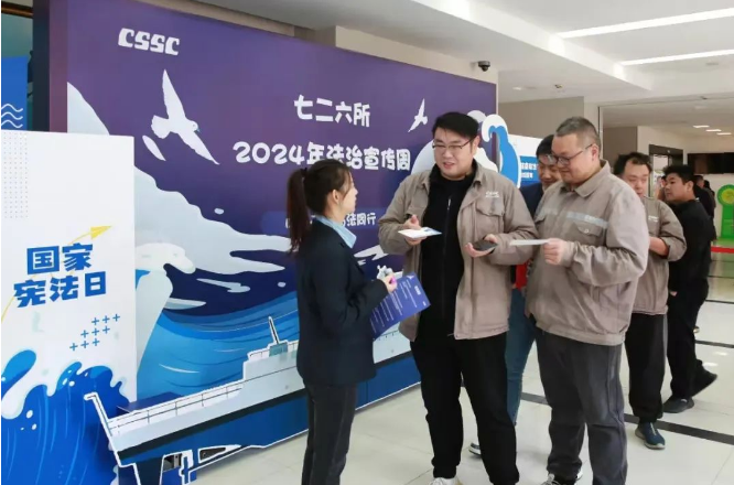 2024年是新中國第一部憲法頒布70周年,今年12月4日是第十一個國家憲法日。按照中央宣傳部、司法部、全國普法辦《2024年全國“憲法宣傳周”工作方案》的部署要求,中國船舶集團有限公司以“大力弘揚憲法精神,推動進一步全面深化改革”為主題開展法治宣傳周活動,深入學習宣傳貫徹習近平法治思想,弘揚憲法法治精神,宣貫法治央企建設要求和集團公司“懸規(guī)植矩、循序善治”特色法治文化,為建設世界一流法治企業(yè)營造濃厚的法治氛圍。