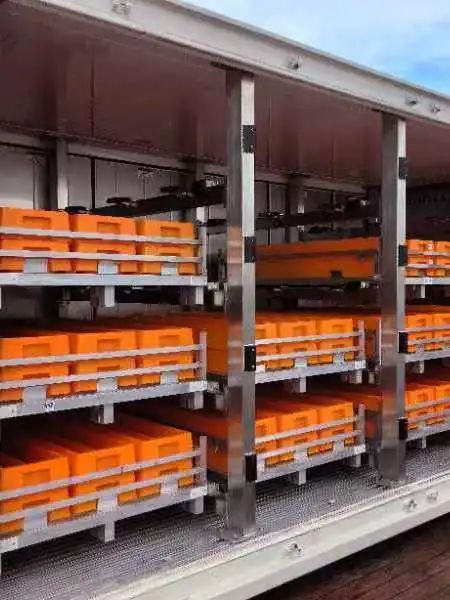 # 露天甲配置了船載巖心集裝箱自動(dòng)裝載系統(tǒng),能夠在集裝箱和電梯之間自動(dòng)轉(zhuǎn)移托盤;