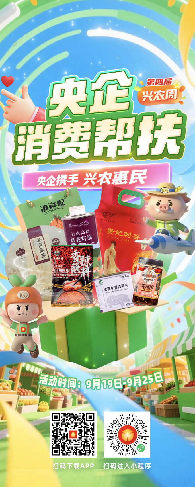 本屆“央企消費幫扶興農周”活動時間為9月19日~9月25日,發(fā)布了央企消費幫扶電商平臺助農大數(shù)據,線上開展限時秒殺、拼團采購、跨店滿減等促銷活動,線下舉辦特色農產品展銷會、創(chuàng)辦非遺等特色主題展,再搭配包括現(xiàn)場簽約、展位打卡等在內的活動,共同打造了一場“能看、能嘗、能買、能玩”的“興農”盛宴。