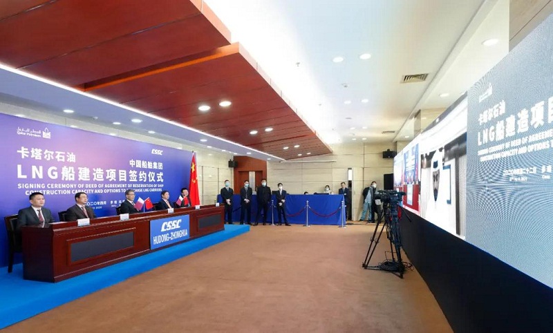 ????2019年4月22日,卡塔爾石油委托其子公司卡塔爾天然氣公司就“百艘LNG船計劃”進行招標。中國船舶集團高度重視、精心準備、積極溝通,組織旗下滬東中華聯(lián)合中國船舶工業(yè)貿(mào)易有限公司(CSTC)全力推進各項競標工作。經(jīng)過一年的不懈努力和先后四輪談判,中國船舶集團最終在激烈的國際競爭中勝出,為卡塔爾石油建造下一代LNG船,彰顯了中國船舶集團在高端海洋裝備領域的強大實力。此次簽約也將為中國船舶集團完成全年目標任務奠定堅實基礎。
