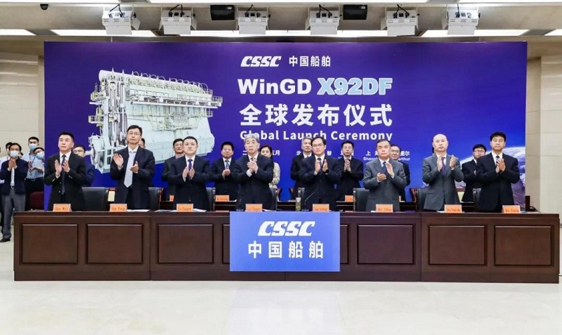????5月26日,由中國船舶旗下溫特圖爾發(fā)動機有限公司(WinGD)自主研發(fā),上海中船三井造船柴油機有限公司建造,中船海洋動力技術(shù)服務(wù)有限公司保障的目前世界最大船用雙燃料低速機WinGD X92DF正式向全球發(fā)布。中國船舶集團董事長雷凡培出席發(fā)布儀式并講話,總經(jīng)理楊金成主持儀式。國家相關(guān)部委、地方政府、船級社、航運公司、造船公司等有關(guān)領(lǐng)導(dǎo)和專家,中國船舶集團副總經(jīng)理馮永強、孫偉、杜剛出席發(fā)布儀式。
