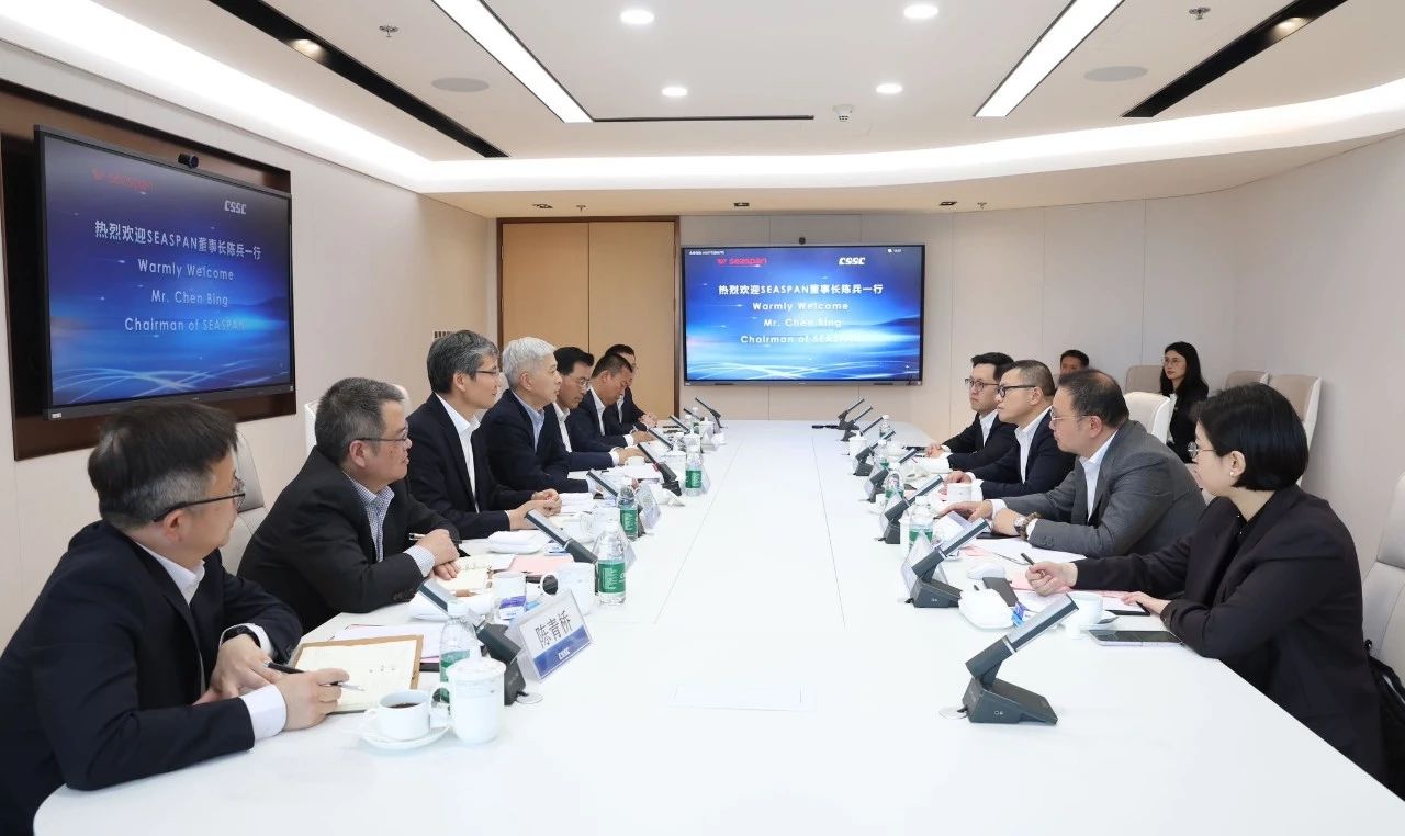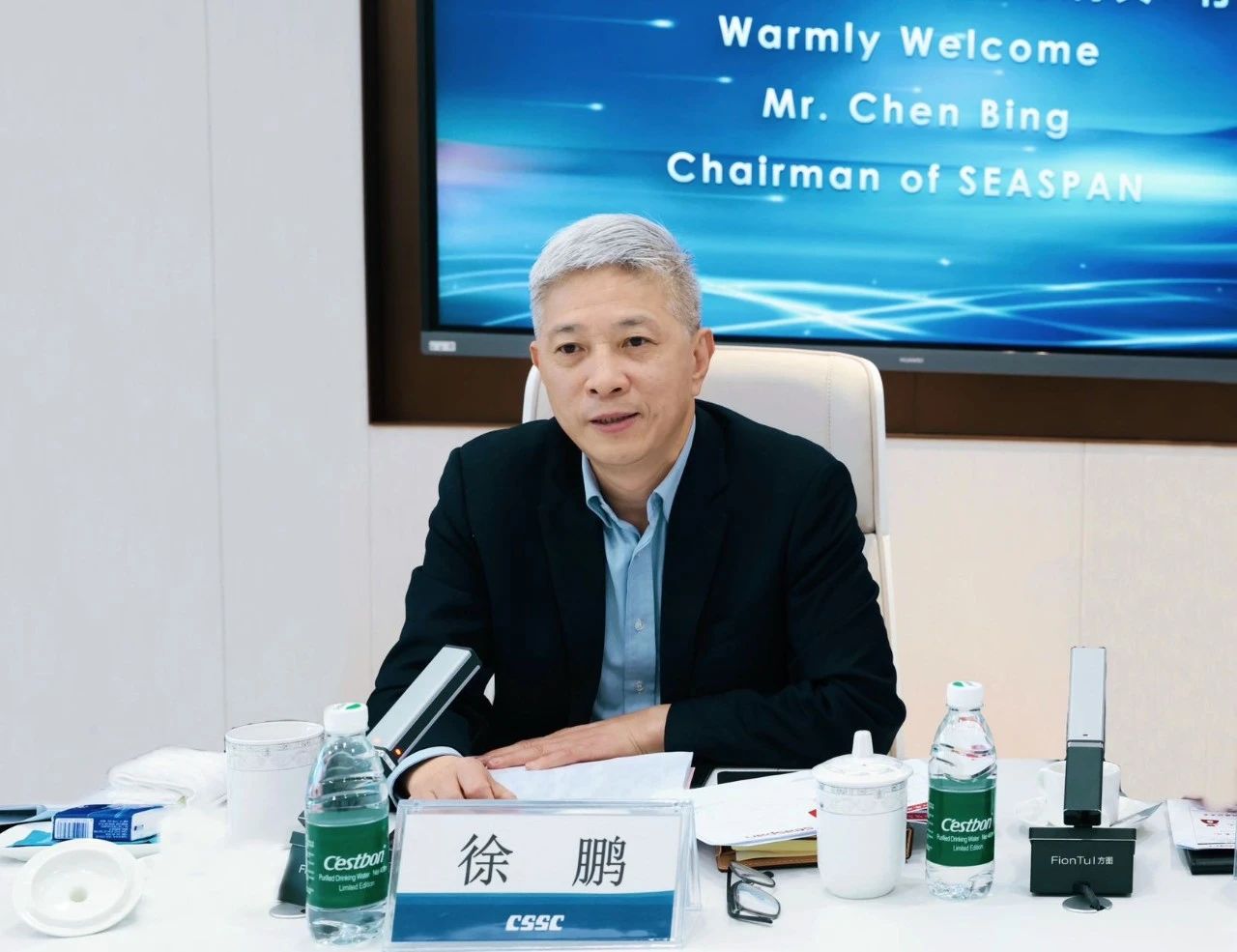 徐鵬對(duì)陳兵一行的來(lái)訪表示歡迎,并感謝Seaspan公司對(duì)中船集團(tuán)的長(zhǎng)期信任與支持。徐鵬表示,中船集團(tuán)將持續(xù)提升自身綜合能力,努力為客戶提供更優(yōu)質(zhì)的產(chǎn)品和服務(wù)。Seaspan公司是全球最大的獨(dú)立集裝箱船租賃船東公司,與中船集團(tuán)在長(zhǎng)期合作中結(jié)下了深厚友誼。未來(lái),希望雙方建立常態(tài)化溝通交流機(jī)制,在船舶建造與升級(jí)改造、國(guó)際船海市場(chǎng)拓展、船舶全生命周期運(yùn)維、綠色能源開(kāi)發(fā)等方面持續(xù)深化進(jìn)一步合作,共同為行業(yè)持續(xù)健康發(fā)展作出應(yīng)有貢獻(xiàn)。