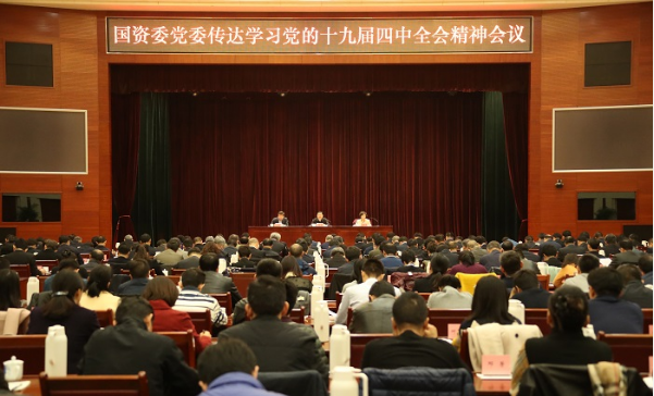 ????11月8日,國資委黨委召開傳達(dá)學(xué)習(xí)黨的十九屆四中全會(huì)精神會(huì)議,對國資委直屬機(jī)關(guān)、中央企業(yè)和直管協(xié)會(huì)學(xué)習(xí)貫徹落實(shí)工作進(jìn)行部署安排。國資委黨委書記、主任郝鵬結(jié)合參加黨的十九屆四中全會(huì)現(xiàn)場聆聽習(xí)近平總書記重要講話的切身體會(huì),結(jié)合國資國企實(shí)際作了宣講,強(qiáng)調(diào)要深入學(xué)習(xí)貫徹黨的十九屆四中全會(huì)精神特別是習(xí)近平總書記在全會(huì)上的重要講話精神,增強(qiáng)“四個(gè)意識(shí)”、堅(jiān)定“四個(gè)自信”、做到“兩個(gè)維護(hù)”,切實(shí)把思想和行動(dòng)統(tǒng)一到全會(huì)精神上來,進(jìn)一步完善國資國企制度體系,深化國資國企改革,增強(qiáng)國有經(jīng)濟(jì)競爭力、創(chuàng)新力、控制力、影響力、抗風(fēng)險(xiǎn)能力,做強(qiáng)做優(yōu)做大國有資本,加快培育具有全球競爭力的世界一流企業(yè),為實(shí)現(xiàn)“兩個(gè)一百年”奮斗目標(biāo)、實(shí)現(xiàn)中華民族偉大復(fù)興的中國夢作出更大貢獻(xiàn)。國資委副主任、黨委委員趙愛明傳達(dá)了全會(huì)公報(bào)和《中共中央關(guān)于堅(jiān)持和完善中國特色社會(huì)主義制度、推進(jìn)國家治理體系和治理能力現(xiàn)代化若干重大問題的決定》(以下簡稱《決定》)主要精神。國資委副主任、黨委委員任洪斌主持會(huì)議。