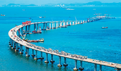 港珠澳大橋主體工程全線貫通,是中國(guó)橋梁屹立世界“橋梁之巔”的縮影。世界最長(zhǎng)跨海大橋、跨度最大的公鐵兩用橋、首座公鐵兩用跨海大橋……近年來(lái),中國(guó)橋梁界為世界橋梁創(chuàng)造了眾多的“世界第一”。數(shù)據(jù)顯示,目前世界排名前10位的跨海長(zhǎng)橋中,中國(guó)占據(jù)6座。而在建造技術(shù)上,中國(guó)已擁有千米級(jí)斜拉橋設(shè)計(jì)施工成套技術(shù)、跨海特大跨徑鋼箱梁懸索橋關(guān)鍵技術(shù)等多項(xiàng)尖端技術(shù)。