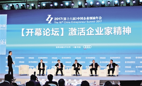 圖為“2017(第十六屆)中國企業(yè)領(lǐng)袖年會”開幕主題論壇現(xiàn)場。 記者 崔國強攝