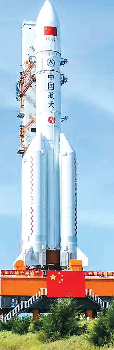 長征五號在向發(fā)射架轉(zhuǎn)運(yùn)中(資料圖片) 新華社發(fā)