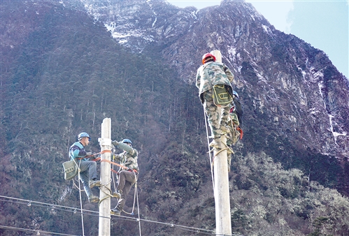 工人在玉麥鄉(xiāng)境內施工。西藏自治區(qū)山南隆子縣玉麥鄉(xiāng)電力線路近日全線貫通,