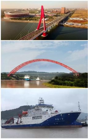 ????上圖所示均為武船集團(tuán)承建的項(xiàng)目。圖1:遼寧盤錦遼濱沿海經(jīng)濟(jì)開發(fā)區(qū)大橋;圖2:四川合江長江一橋;圖3:我國自主研制的第一艘載人潛水器支持母船“深海一號”。