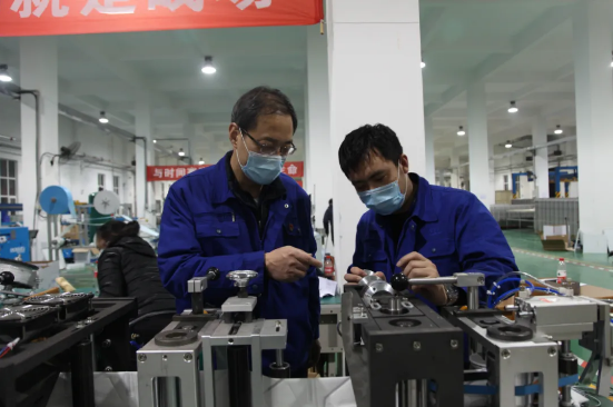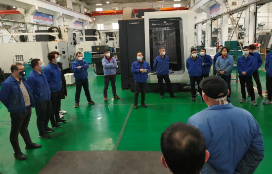 ????接到口罩機(jī)、壓條機(jī)緊急生產(chǎn)任務(wù)后,作為主要生產(chǎn)單位,金加車(chē)間黨支部連夜召開(kāi)部署動(dòng)員會(huì)。一方面,緊急摸排目前能夠復(fù)工返崗的人員情況,另一方面,面對(duì)緊急繁重的任務(wù),他們做出了一個(gè)重要決定:所有在車(chē)銑鉗崗位工作過(guò)的,目前已經(jīng)在管理和輔助崗位上的職工,立即返回原崗,參與生產(chǎn)!1000多種近30000個(gè)零部件,短時(shí)間內(nèi)要全部加工完成?!斑@是建廠以來(lái)從未有過(guò)的任務(wù)量?!秉h支部書(shū)記、車(chē)間主任孫培杰在動(dòng)員會(huì)上說(shuō),“黨員要發(fā)揮好模范作用,全體員工都要給我頂上去,不獲全勝,絕不收兵!”