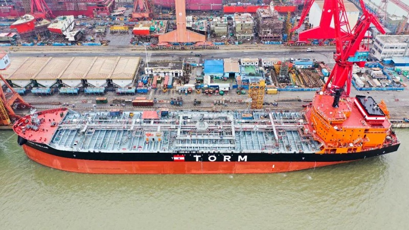 ????廣船國際為TORM航運公司建造的7艘5萬噸化學品/成品油船中最后一艘船提前2天完成試航歸來。該型船加裝開式除硫系統(tǒng),是環(huán)保、節(jié)能、高效的新型油船,試航的完成,為搶抓完工節(jié)點贏得了寶貴時間,系列船全部交付指日可待!