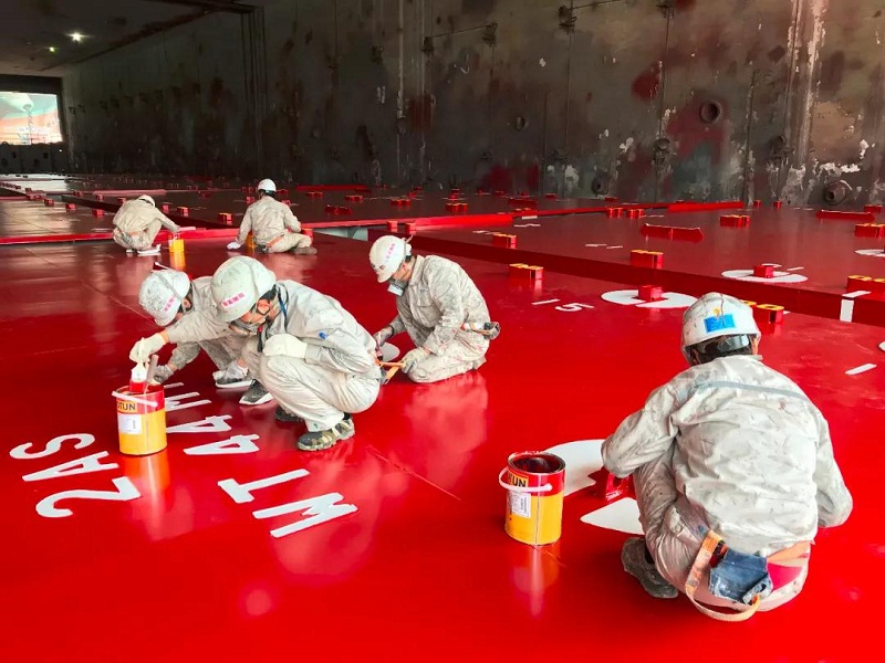 ????最“驚心動魄”的要屬最后一批到廠的16塊艙口蓋。4月20日回廠,21日沖砂報驗結(jié)束,留給涂裝二部的時間不到5天,而以往這些工作至少需要8天。該部門當(dāng)時根據(jù)天氣、溫度、油漆廠商的技術(shù)服務(wù),積極與船東協(xié)商最終敲定了36小時的淋水時長,打破了以往最短時間的紀(jì)錄,最終一次性取得成功。