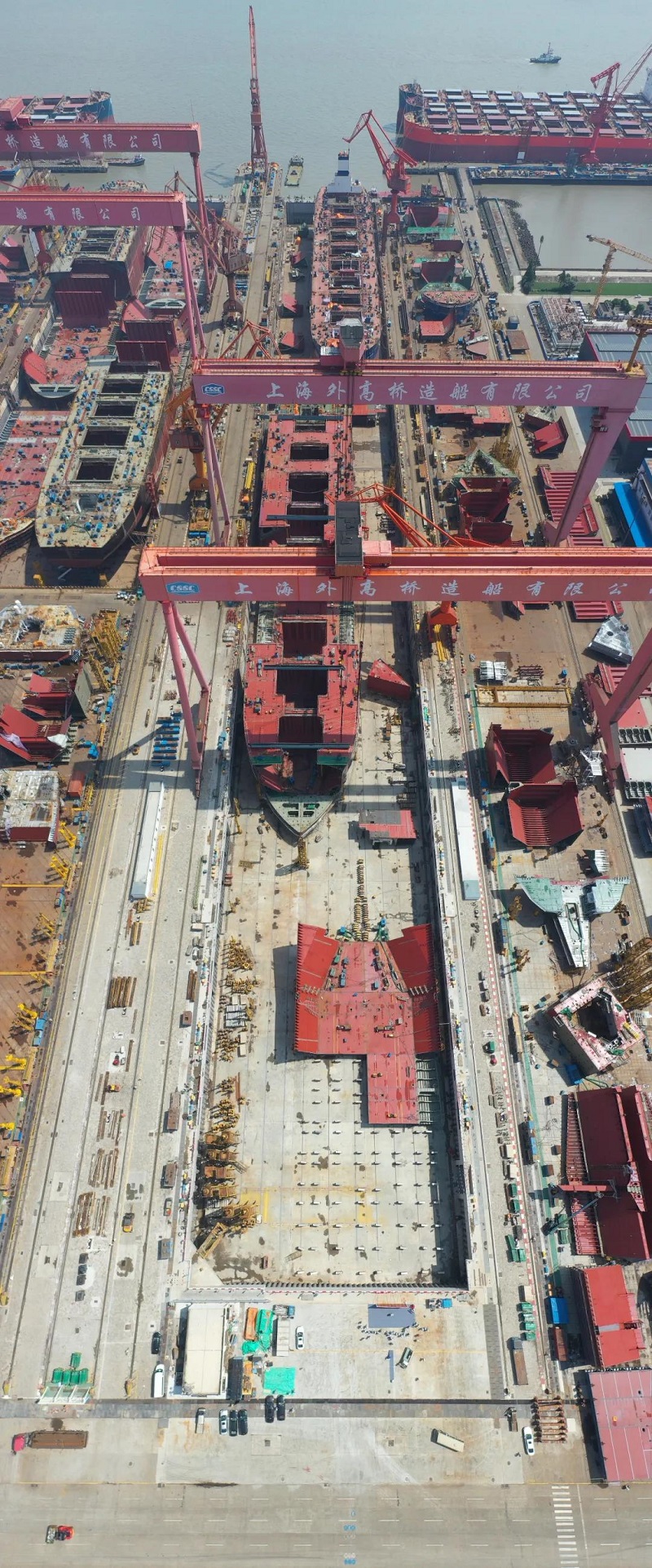 自2001年投產(chǎn)以來,外高橋造船在2號(hào)船塢先后建造了VLCC、FPSO、自升式海上石油鉆井平臺(tái)、40萬噸超大型礦砂船(VLOC),以及榮獲國(guó)家科技進(jìn)步獎(jiǎng)特等獎(jiǎng)的深水半潛式石油鉆井平臺(tái)“海洋石油981”號(hào)等一批品牌產(chǎn)品。