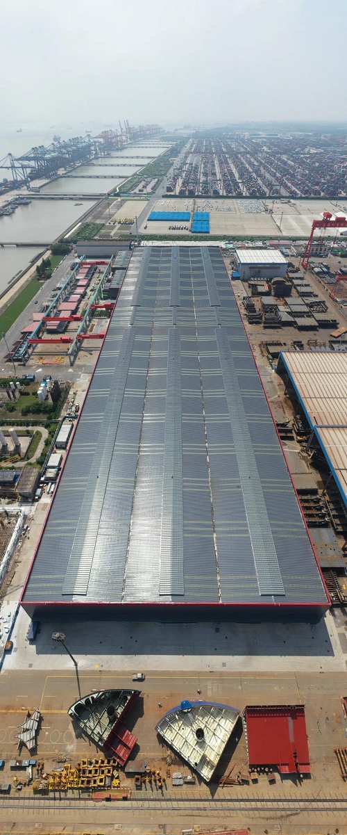 該廠房由中國(guó)船舶集團(tuán)旗下中船九院設(shè)計(jì),是國(guó)產(chǎn)大型郵輪建造工程的重要配套項(xiàng)目之一,創(chuàng)新采用一體化托架式先進(jìn)結(jié)構(gòu)形式的設(shè)計(jì)方案,并在施工中充分發(fā)揮設(shè)計(jì)引導(dǎo)、管理同步的優(yōu)勢(shì),為工程整體穩(wěn)步推進(jìn)保駕護(hù)航。