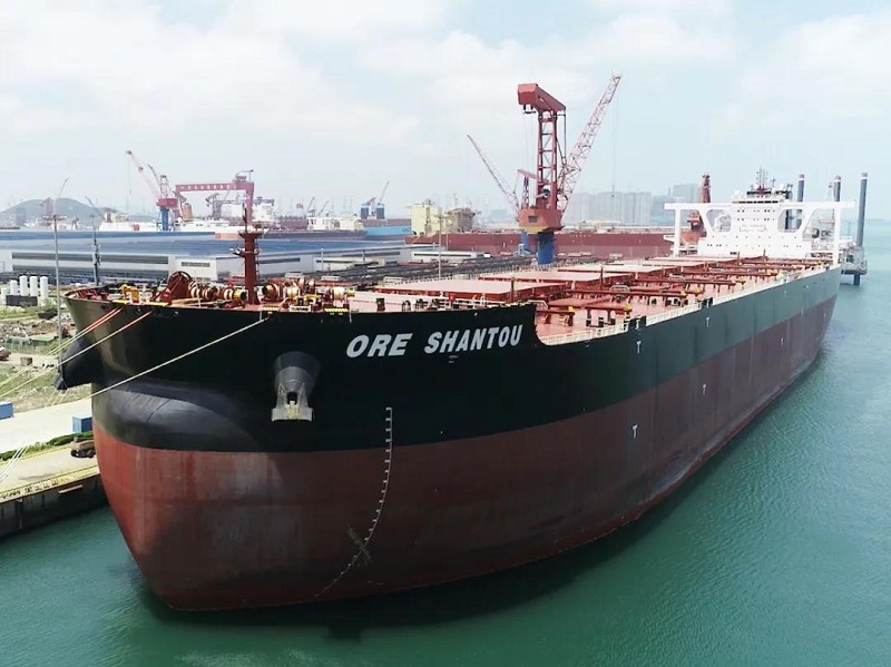 2017年年底,北船重工與工銀租賃、招商輪船簽訂了6艘32.5萬噸礦砂船建造合同。該批船交付后將用于巴西淡水河谷鐵礦石運(yùn)輸,首制船“ORE YANTAI”號和2號船“ORE FUZHOU”號分別于今年2月和4月交付,本次交付的是第三艘船,后3艘船計劃于今年年底前全部交付。