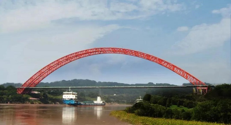 2002年1月, 簽訂巫山長(zhǎng)江大橋合同。巫山長(zhǎng)江大橋位于長(zhǎng)江三峽段的巫峽入口處,是一座鋼管中承式拱橋,橋面凈寬19米,雙向4車道,主跨492米,被稱為"渝東門(mén)戶橋""渝東第一橋",創(chuàng)造了多項(xiàng)世界紀(jì)錄。