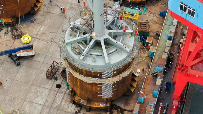 吸力筒導(dǎo)管架風(fēng)機基礎(chǔ)交付后將用于廣東省陽江市陽西縣沙扒灣300兆瓦海上風(fēng)電項目。