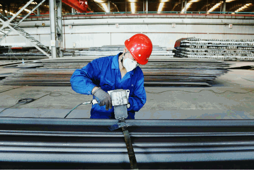 物資公司下屬鞍山公司預處理車間現(xiàn)場,中午最高可達40°C,工作人員正在進行型材預處理作業(yè),保質保量完成物資供應。