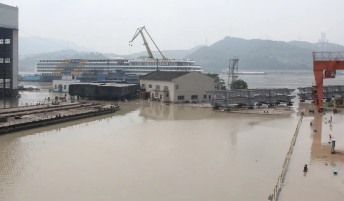 8月19~20日,長江洪峰先后到達(dá)東港船舶和川船重工。東港船舶船臺碼頭、104廠房、鋼結(jié)構(gòu)新堆場、103總拼廠房被淹。川船重工2-4、2-5、2-6室內(nèi)船臺,涂裝廠房、主機庫、變壓站、下水斜架絞車房等主要生產(chǎn)場地被淹,廠房內(nèi)進(jìn)水已達(dá)1米深。