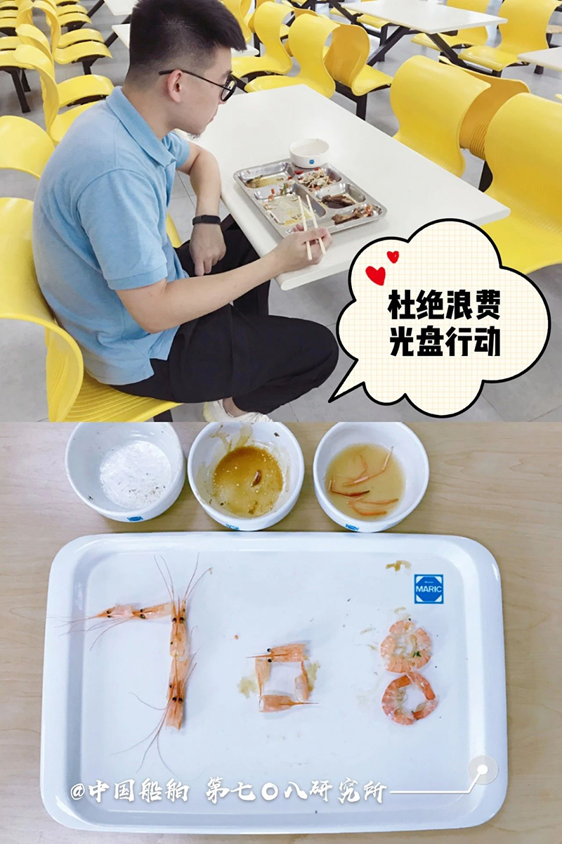 “誰知盤中餐,粒粒皆辛苦?!? 自古以來 敬天惜糧、勤儉節(jié)約就是 中華民族傳統(tǒng)美德 中國船舶集團多家成員單位 用實際行動 杜絕“舌尖上的浪費”