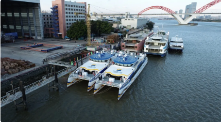 2020年12月30日,中國船舶集團旗下遠舟公司所屬英輝南方造船(廣州番禺)有限公司建造的“新海韻”號、“新海駿”號兩艘鋁合金雙體高速客船,同時在廣州市番禺區(qū)英輝南方碼頭順利交付?!靶潞m崱薄ⅰ靶潞rE”是英輝南方為船東建造的藍色干線系列高速客船的第8和第9艘,船長42.8米,寬10.3米,載客199人,設計航速35節(jié)。遠舟公司所屬英輝南方在鋁合金高速客船第三代船型基礎上,開展技術創(chuàng)新和船型優(yōu)化,開發(fā)完成了“新海韻”、“新海駿”為代表的第四代新船型。