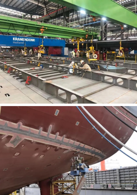 安環(huán)保衛(wèi)部安保消員工堅(jiān)守崗位,保障大型郵輪作業(yè)安全;集配部碼頭鋼板抓緊卸貨,全力保障生產(chǎn);制造二部400余名員工投入大型郵輪薄板分段建造;涂裝部800余名員工對(duì)大型郵輪/民船關(guān)鍵項(xiàng)目進(jìn)行涂裝;搭載部1300余名員工堅(jiān)守崗位保證船塢節(jié)點(diǎn);總裝一部400余人圍繞止鏈器/艙口圍導(dǎo)軌安裝等開(kāi)展生產(chǎn),總裝二部對(duì)大型郵輪總段扣壓管穿艙件進(jìn)行焊接;生產(chǎn)保障部開(kāi)展大型郵輪臨時(shí)電力系統(tǒng)新式電箱改造。