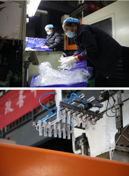 為保障防疫物品供應(yīng),春節(jié)期間,前衛(wèi)公司精密模塑產(chǎn)業(yè)生產(chǎn)車間24小時(shí)不停機(jī)。各機(jī)臺(tái)滿負(fù)荷運(yùn)轉(zhuǎn),每天生產(chǎn)咽拭子棉簽棒1000萬(wàn)支,一次性保存管70萬(wàn)支,為全國(guó)核酸檢測(cè)能力的提升提供了強(qiáng)有力的保障。