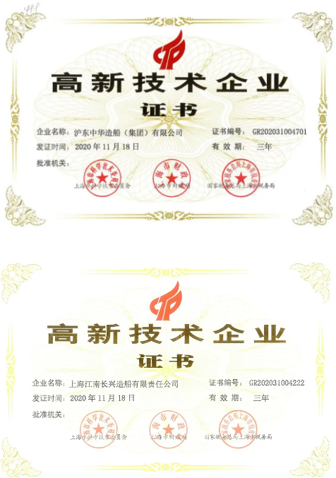日前,中國船舶集團旗下滬東中華及其控股公司上海江南長興造船有限責任公司雙雙收到了由上海市科學技術委員會、上海市財政局、國家稅務總局上海市稅務局聯(lián)合頒發(fā)的高新技術企業(yè)證書。