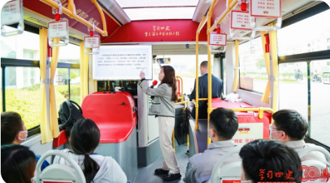 紅色巴士從浦東開發(fā)陳列館出發(fā),講解員帶領(lǐng)“乘客”一路學(xué)習(xí)小陸家嘴地標(biāo)背后的故事,感受國(guó)際金融中心的崛起,回顧浦東從阡陌農(nóng)田到高樓林立30年的發(fā)展歷程。窗內(nèi)窗外,歷史故事與魔都?xì)庀蠼豢?,邊行車、邊參觀、邊講課、邊互動(dòng)的學(xué)習(xí)形式,讓“四史”學(xué)習(xí)的過程更具代入感。本次“四史”學(xué)習(xí)不僅激發(fā)了青年的拼搏意志,增強(qiáng)了對(duì)城市發(fā)展及企業(yè)改革的認(rèn)同感,更堅(jiān)定了崗位立功的理想信念,引領(lǐng)青年不懈努力,為企業(yè)高質(zhì)量發(fā)展匯聚奮進(jìn)力量。