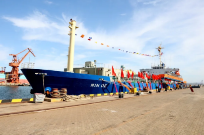 2020年,中國船舶集團(tuán)旗下大船集團(tuán)將散貨船改裝而成的“民德”號交付。這是全球首制、具有完全自主知識產(chǎn)權(quán)的舷側(cè)開孔式養(yǎng)殖工船,具有魚類養(yǎng)殖、餌料加工、活魚運(yùn)輸?shù)裙δ?。交船的同時,大船集團(tuán)與東方漁業(yè)簽約10+8艘大型養(yǎng)殖工船項目。